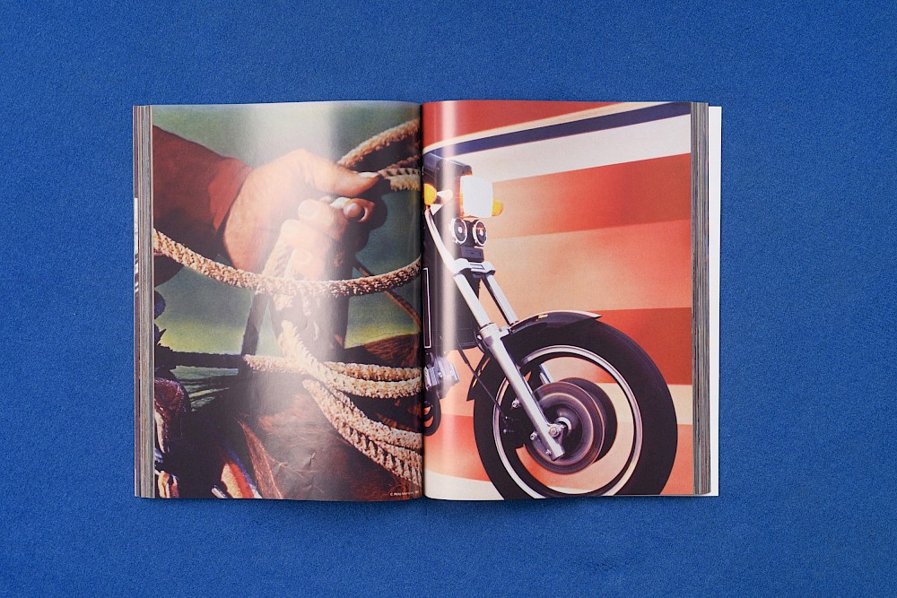 Pourtant, alors même qu’au sein dans ses pages peu de formes textuelles sont présentes, les images-pictures que l’on découvre là l’effeuillage semblent parler à voix haute, vanter leurs charmes et exalter leurs formes. Dans une série de narrations visuelles bruyantes de couleurs et de textures, BOY nous plonge dans les représentations normatives d’un idéal de vie et de désir masculin, naissant dans les années 1960 et s’aventurant jusqu’au XXIe siècle.