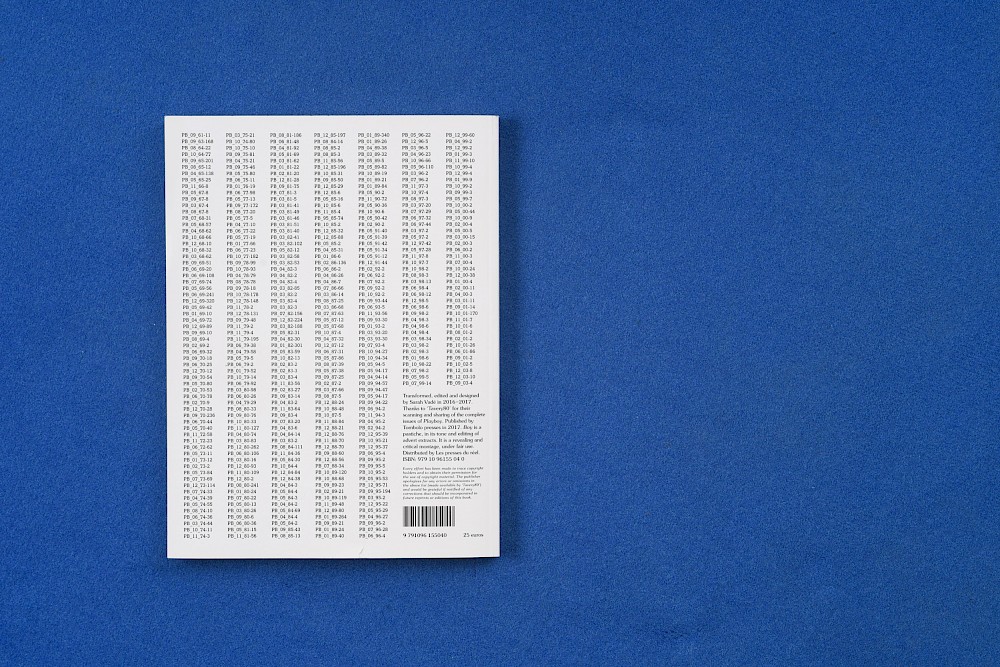 Et toutes ces pages observées, orphelines de folio, deviennent une forme de rythmique euphonique, dans laquelle aucun repère, aucune orientation n’est possible. Car la voiture-intérieur-cuir devient motif plus que sujet photographique, et est repris au fil des pages, sous diverses formes et couleurs, s’hybridant au travers des multiples modèles automobiles dont rêvent les lecteurs de PLAYBOY. Et il en va de même pour la bouteille d’alcool, les ceintures en cuir, les cow-BOYs, les appareils technologiques; et les femmes.